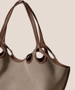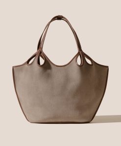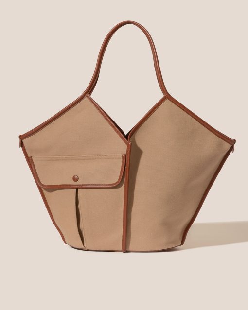 HEREU Women’s Duna – Leather-trimmed Organic Cotton Tote Bag | Almond & Tan