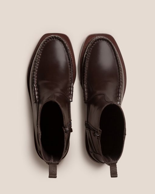 Men’s low-calf zipped boot crafted in structured calf leather.
