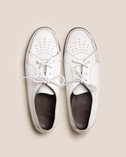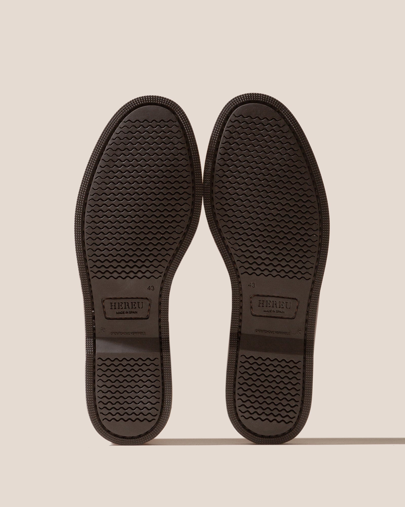 Men’s lace-up shoe with rubber sole, crafted in grainy calf leather. Hand-sewn using the classic Spanish nautical loafer popular in the 70s.