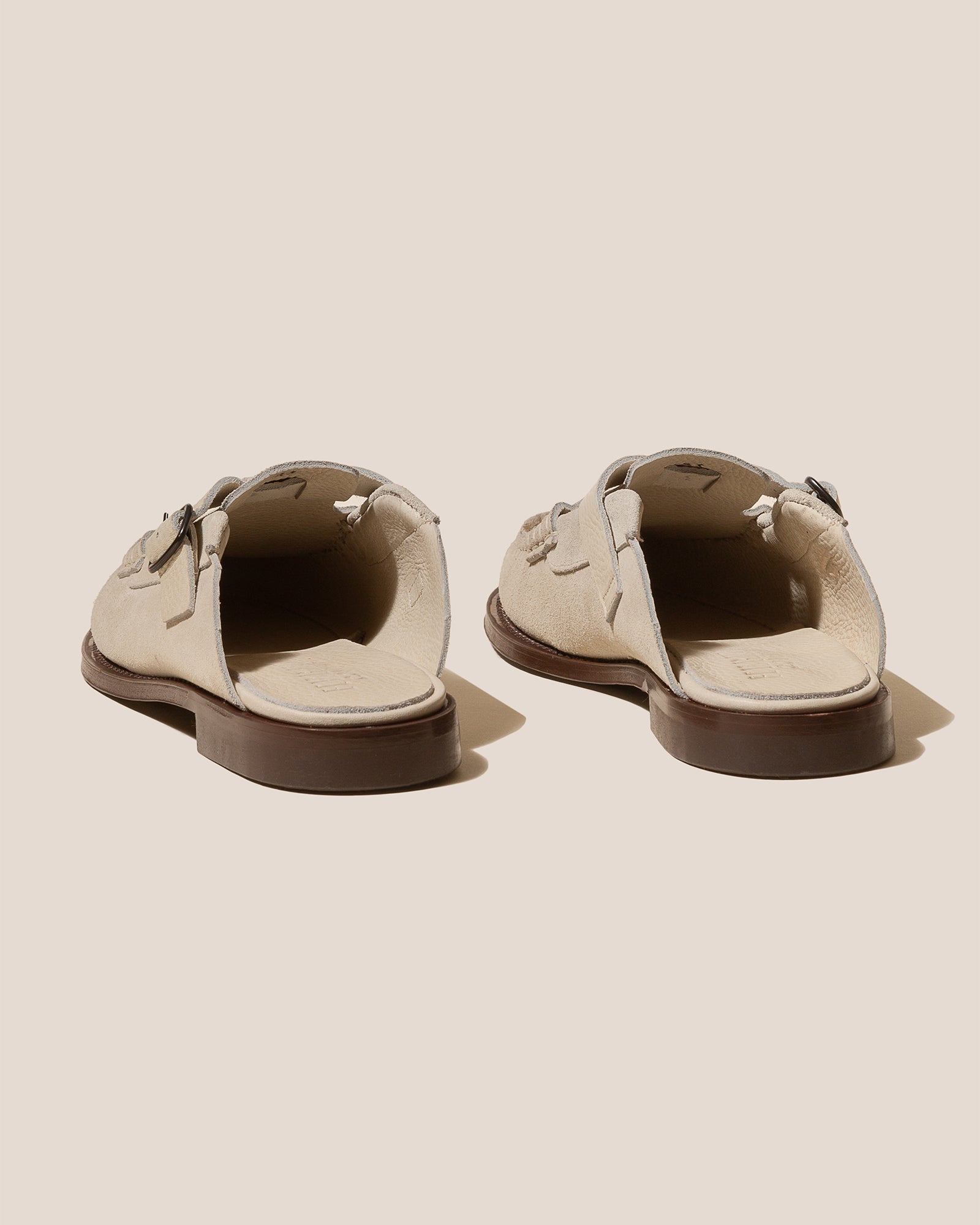 Buckle-strap mule loafer crafted in unlined full-grain double face Italian suede. Hand-sewn using the traditional moccasin construction. The outsole is stitched to the upper for extra flexibility and durability.