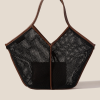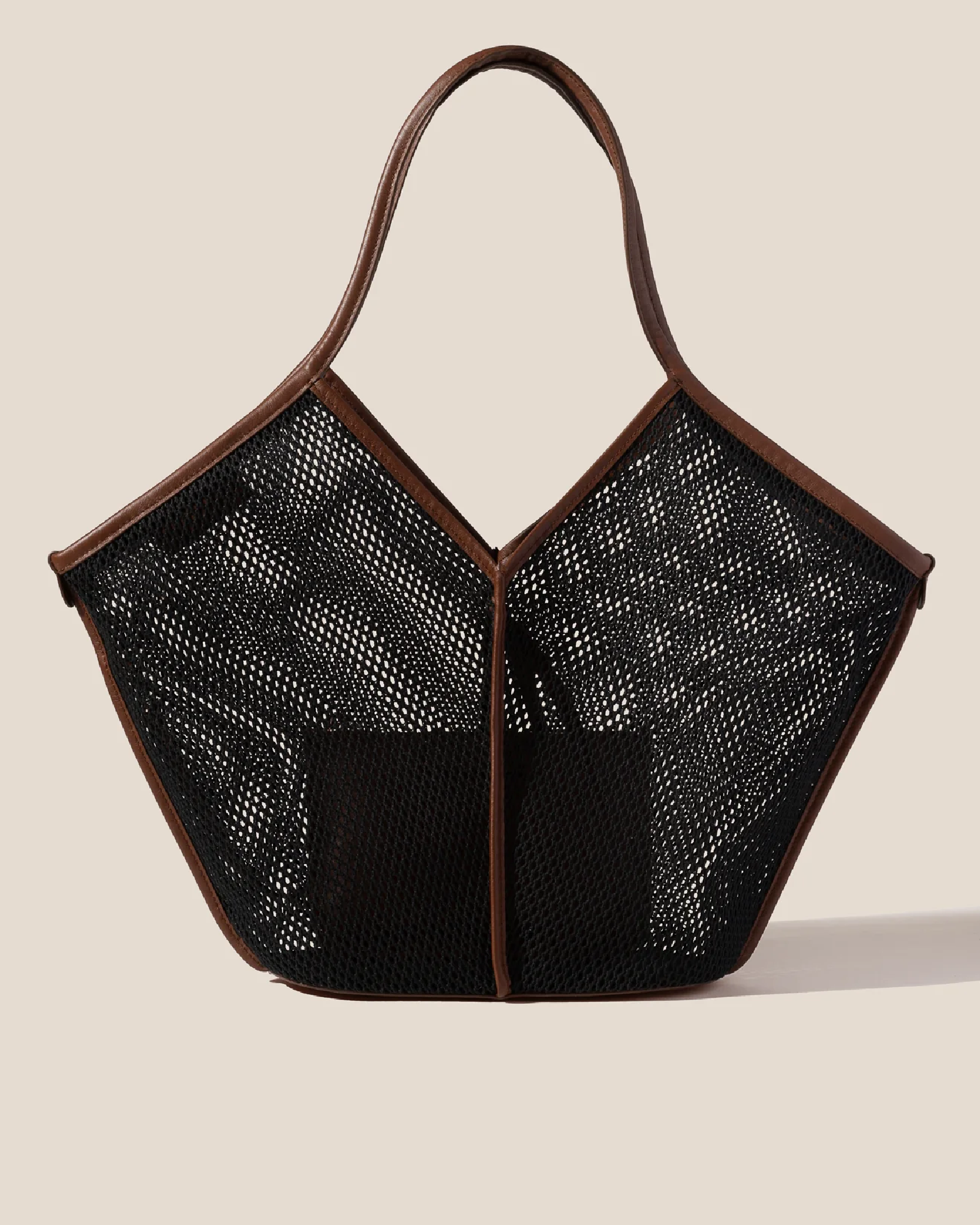 Delicate-handle tote crafted in recycled cotton and polyester net and trimmed with smooth calf leather.