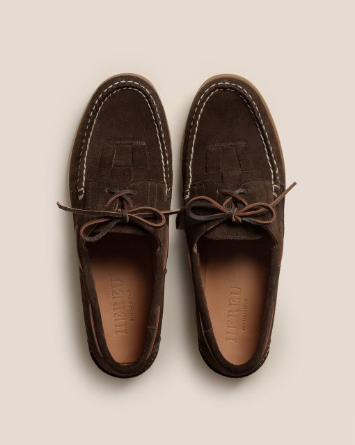 Lace-up loafer with a interwoven detail and rubber sole, crafted from Spanish calf suede. Hand-sewn using the classic Spanish nautical loafer popular in the 70s.