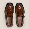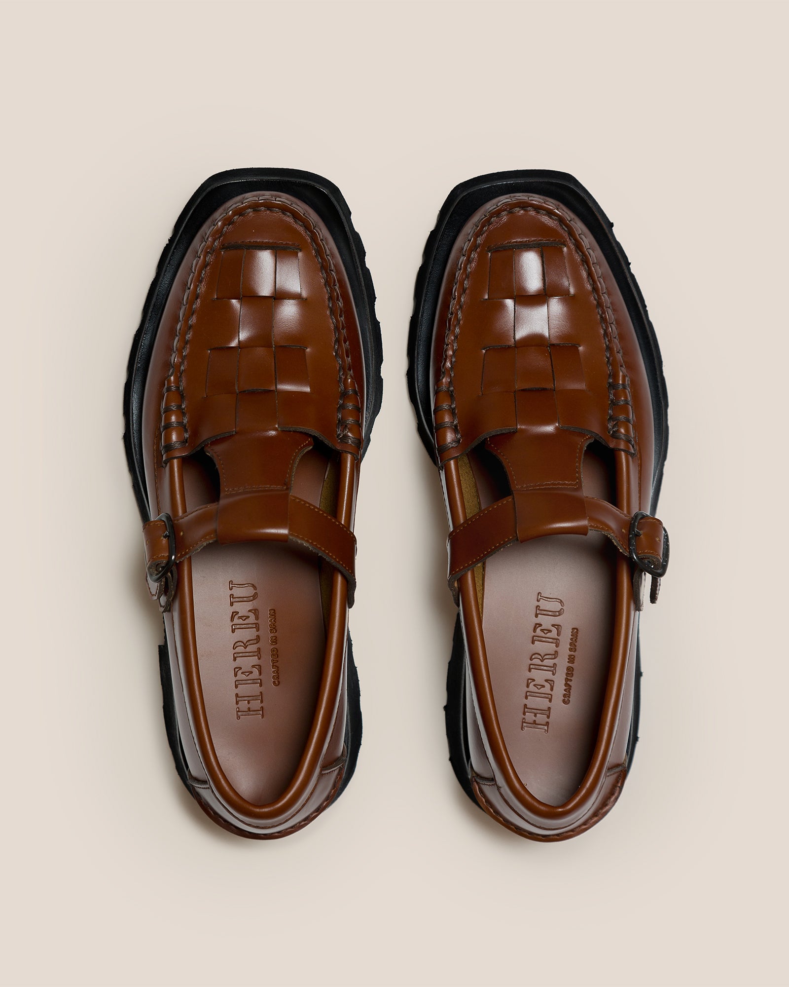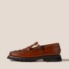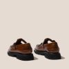 T-bar loafer crafted in Spanish brown full-grain calf leather updated with a blown rubber tread sole. The upper has been hand-sewn using the traditional moccasin construction.