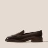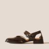 Square-toe two-part shoe with cut.out detail. Crafted in structured leather.