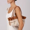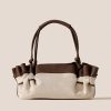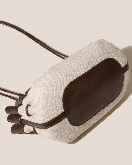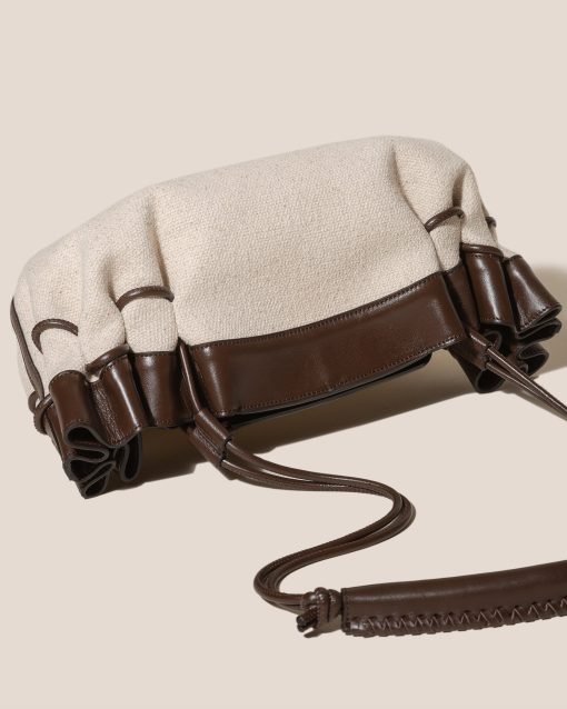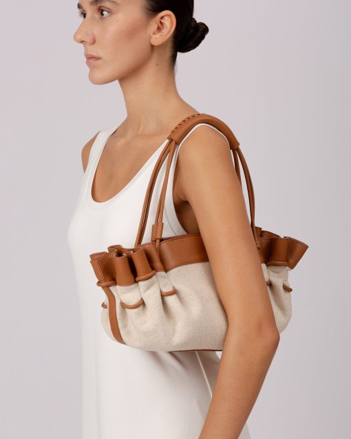 HEREU Women’s Arta Canvas – Pleated Shoulder Bag | Natural & Dark Brown