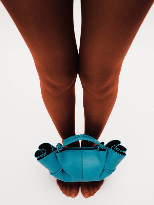 Small pleated crossbody/ handbag crafted in supple shiny lambskin.