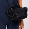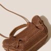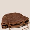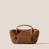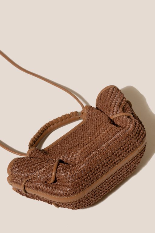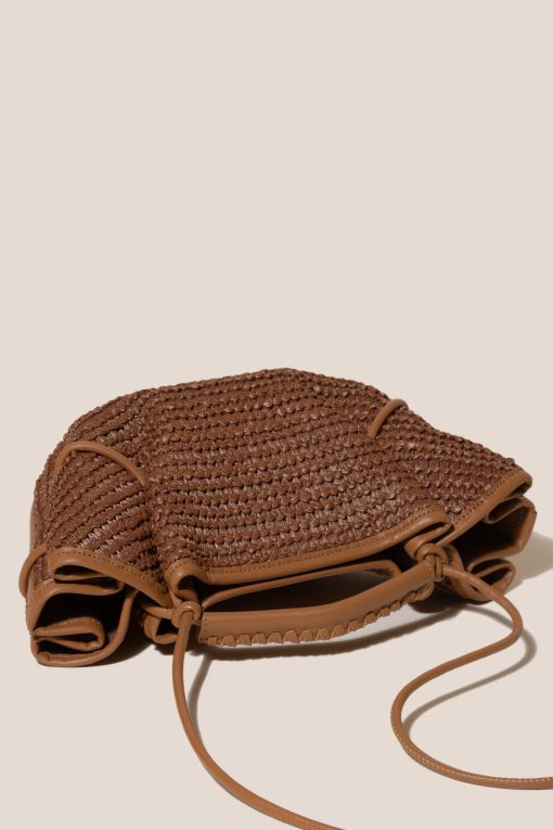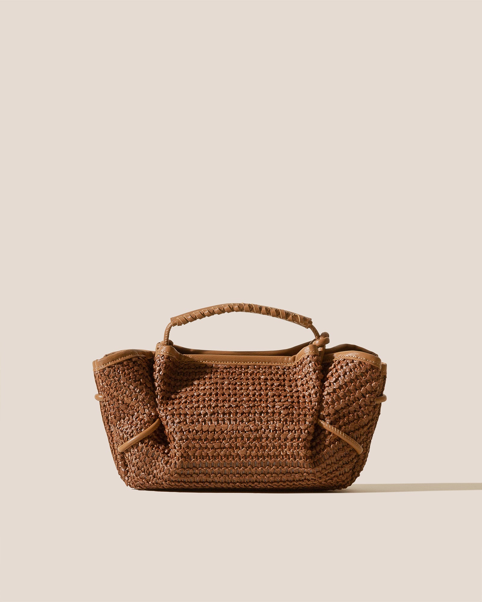 Small pleated crossbody/handbag crafted in natural raffia, with braided calf leather handles.