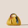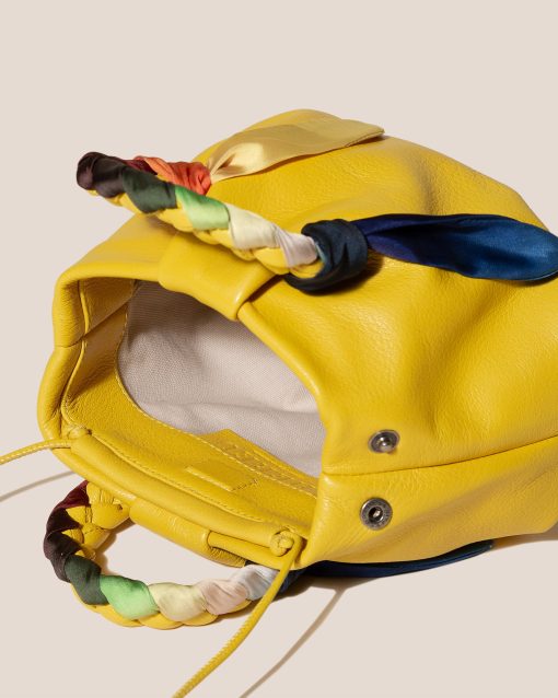 Small leather handbag with braided leather handles and an intertwined foulard detail. With a slim adjustable strap, it can be carried as a crossbody or by hand. Crafted in supple lambskin and lined with organic cotton canvas