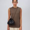 Small leather tote with braided leather handles, crafted in supple lambskin lined with organic cotton canvas.