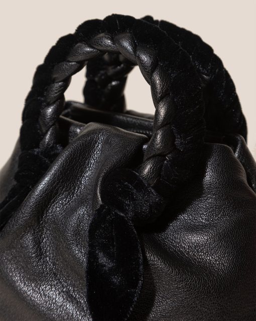 HEREU Women’s Bags Bombon Velvet Foulard – Plaited-handle Leather Handbag | Black