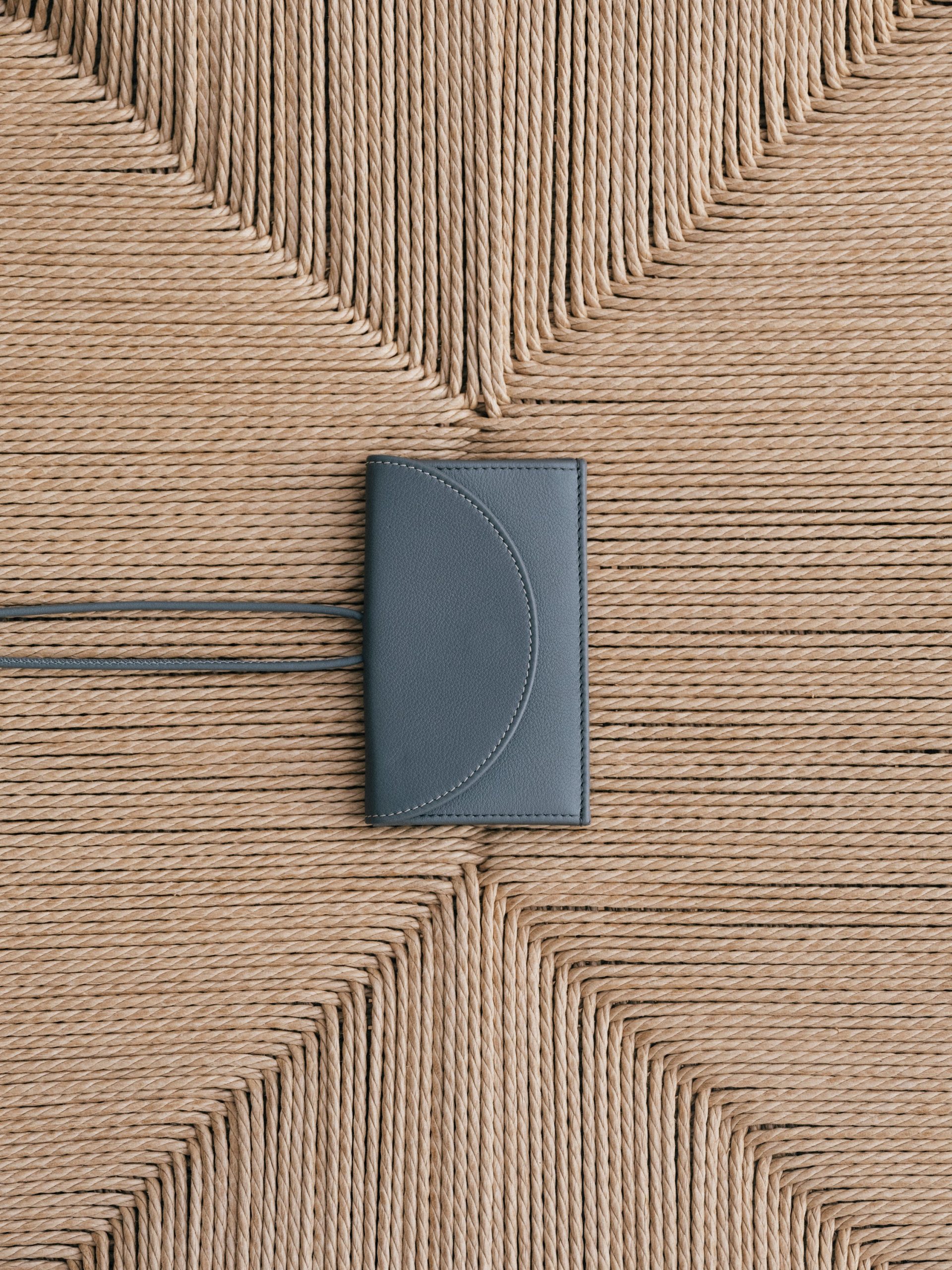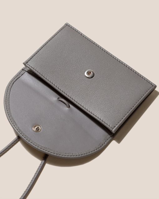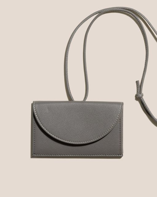 Coin purse and card holder wallet with adjustable strap crafted in calf leather.