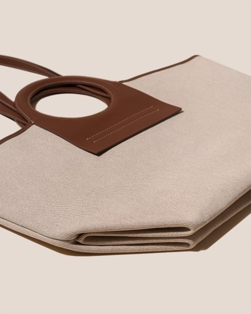 Tote bag constructed from organic textured premium canvas and trimmed with calf leather.