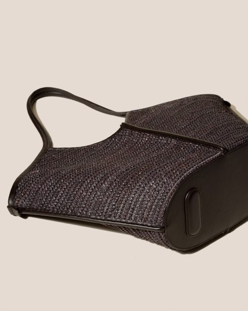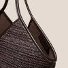 Leather trimmed raffia tote bag edged with smooth leather. It has a zipped pouch to secure small essentials and slim top handles that sit over the shoulder.