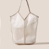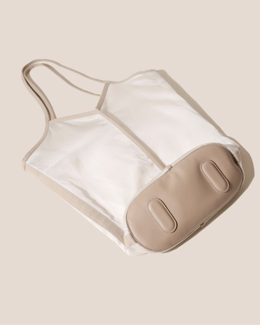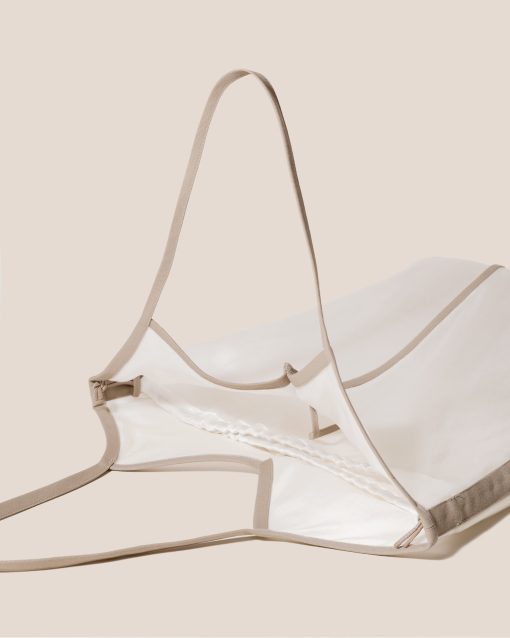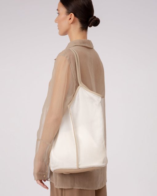 Small flowy tote crafted in silk organza, framed with smooth calf leather.