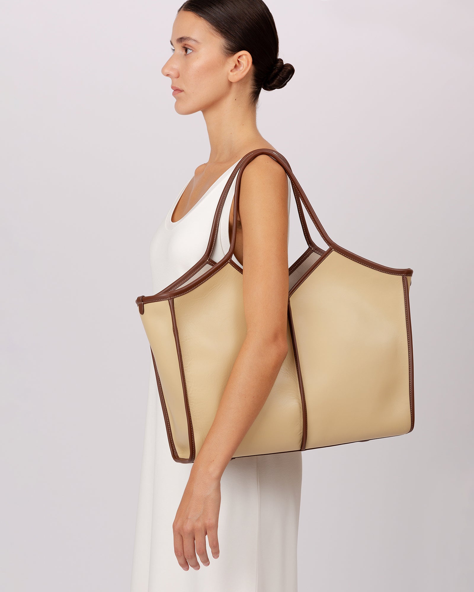 HEREU Women’s Calella Squared Medium Leather – Leather-trimmed Tote Bag | Natural
