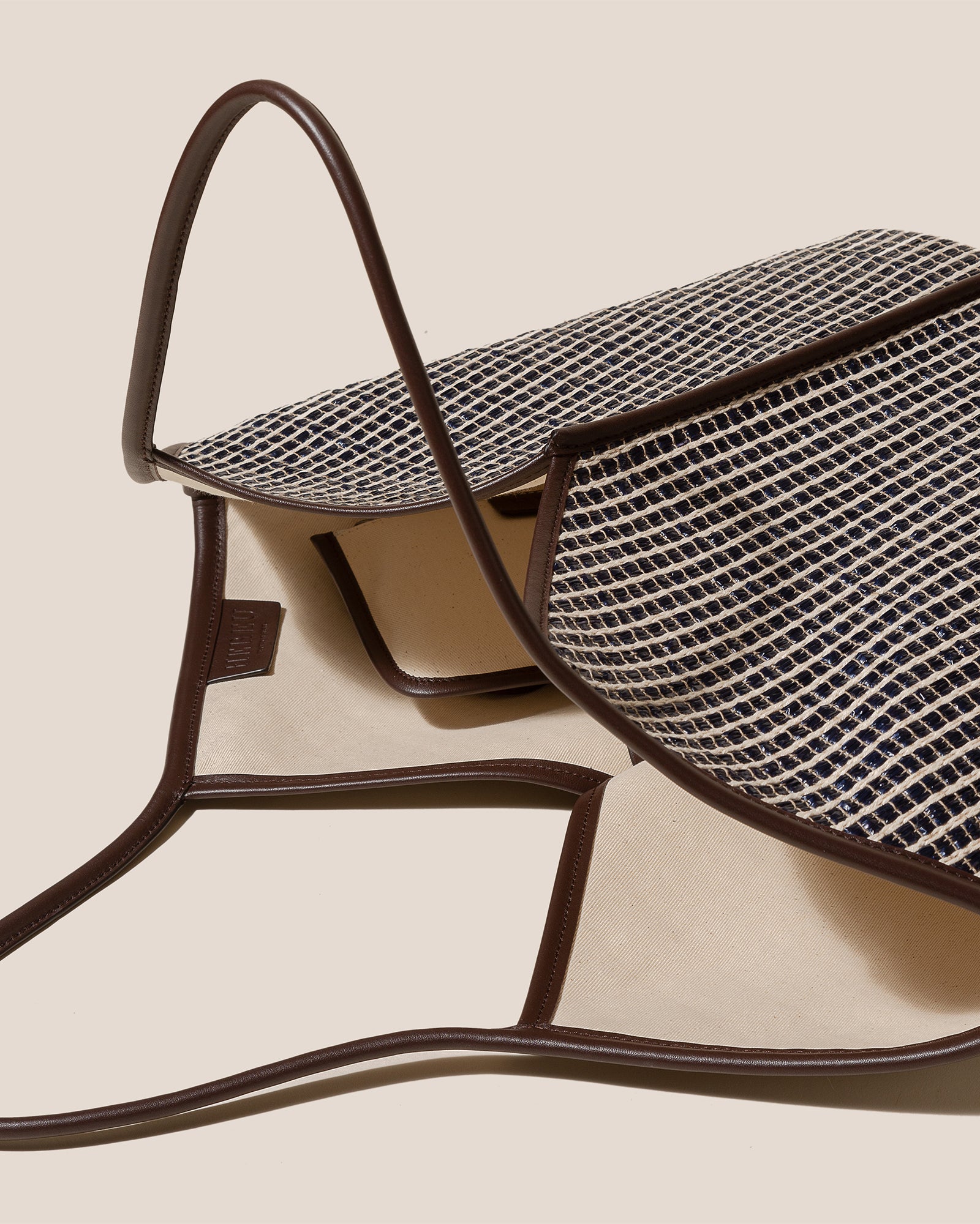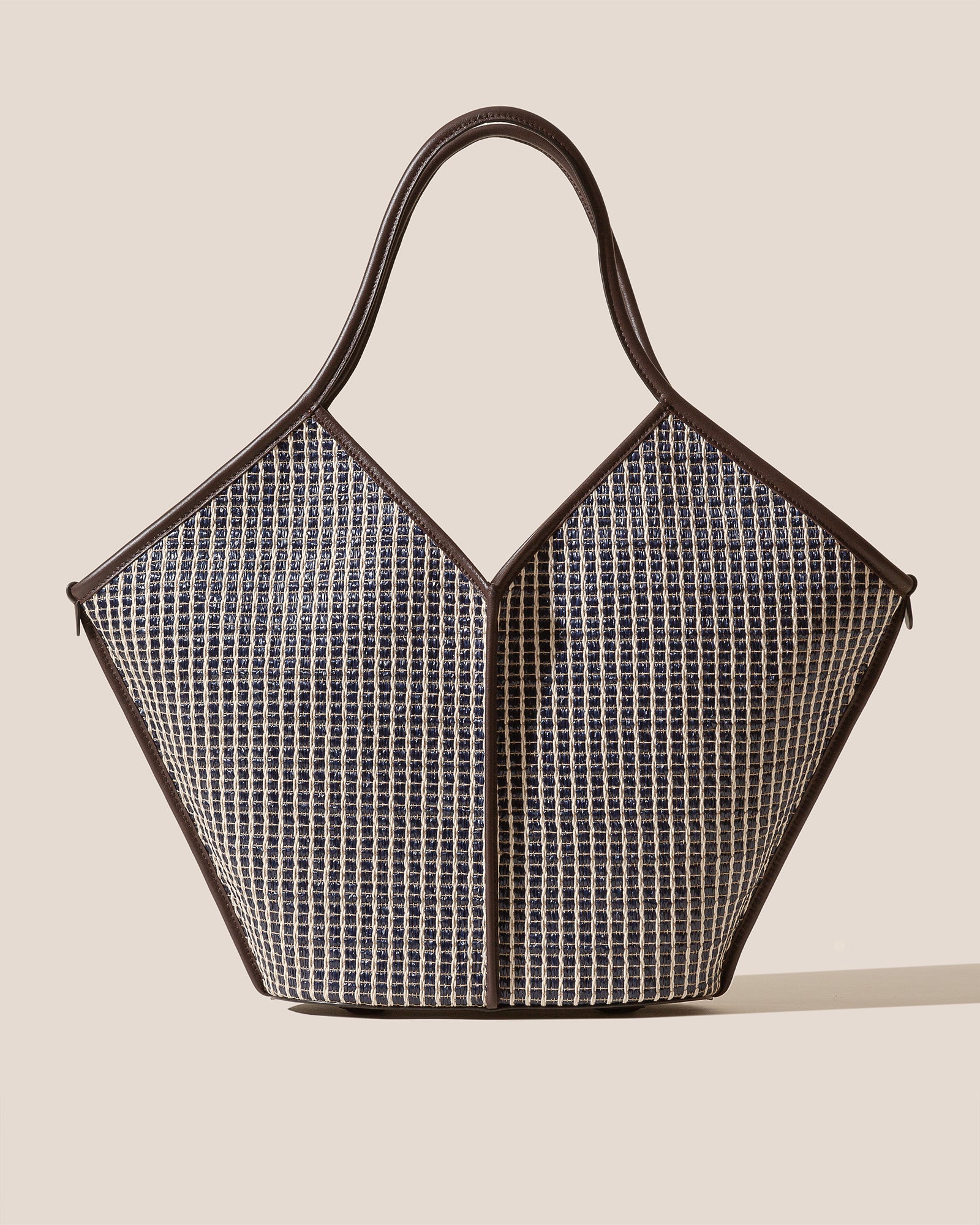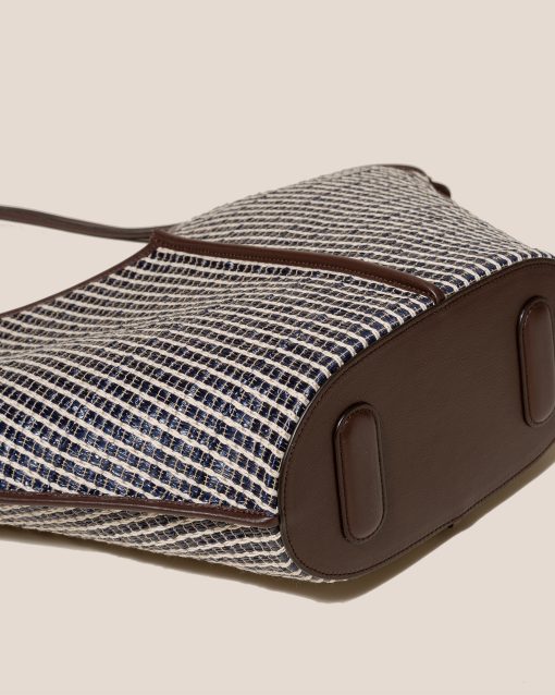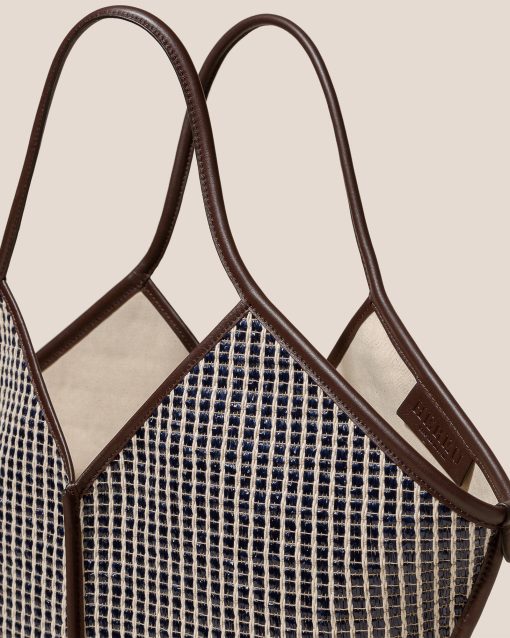 HEREU Women’s Calella Striped Raffia – Leather-trimmed Tote Bag | Navy
