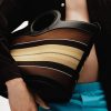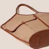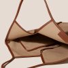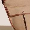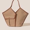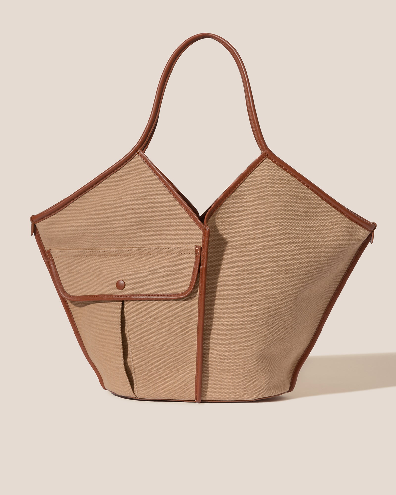 Side-pocket organic cotton tote bag edged with smooth leather. It has a zipped pouch to secure small essentials and slim top handles that sit over the shoulder.