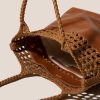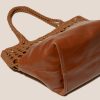 Braided top shoulder bag crafted in polished calf leather and waxed cotton. Organic cotton lining.