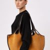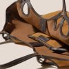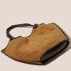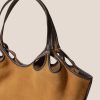 Tote bag with cut-out handles, crafted in calf suede and trimmed with smooth calf leather. The interior is coated with suede for added structure.