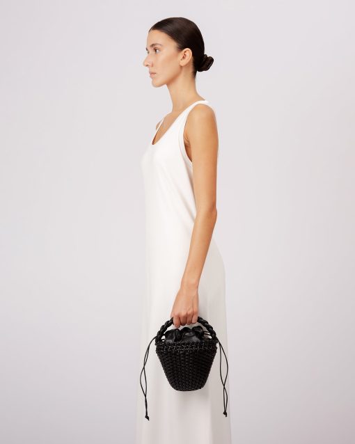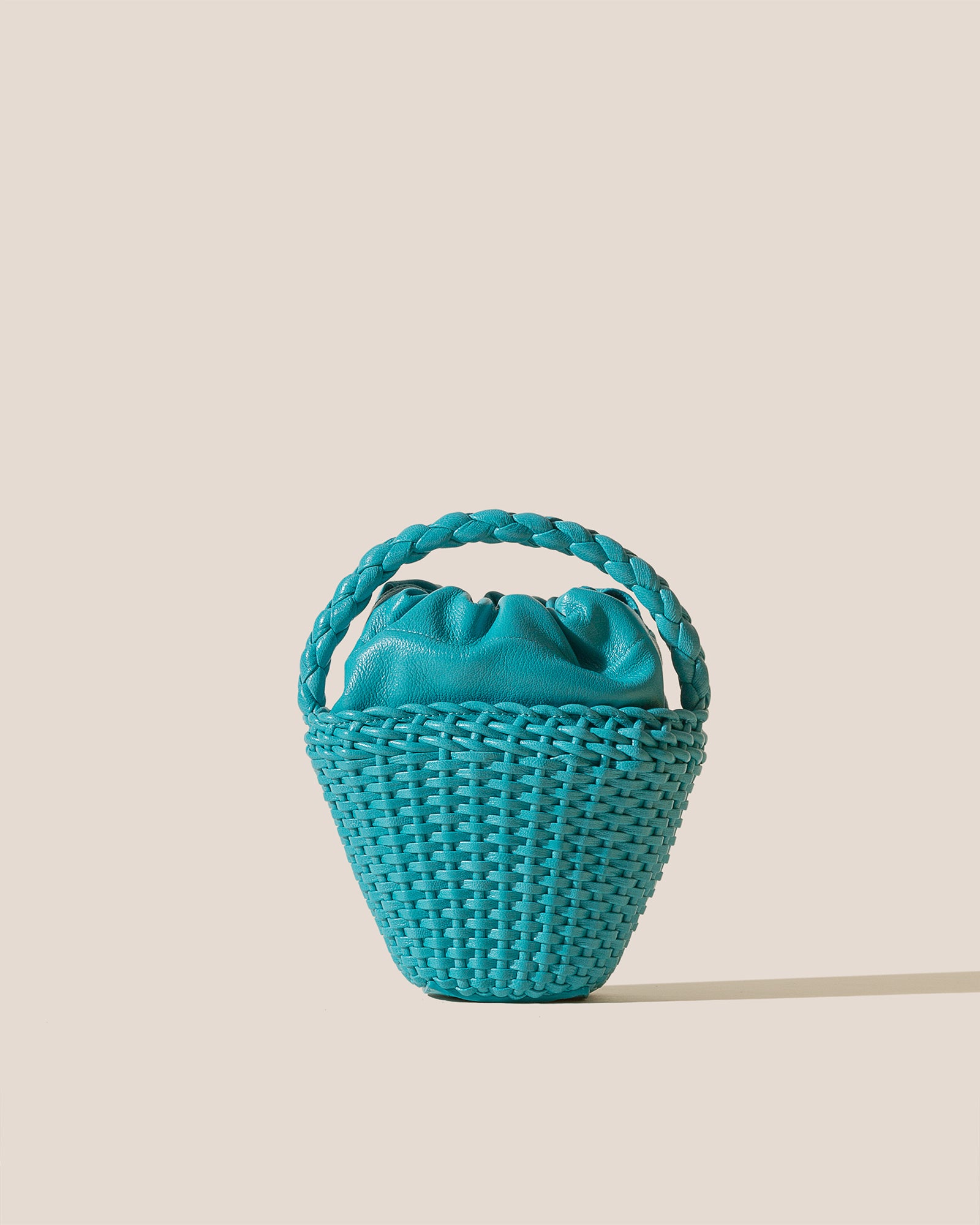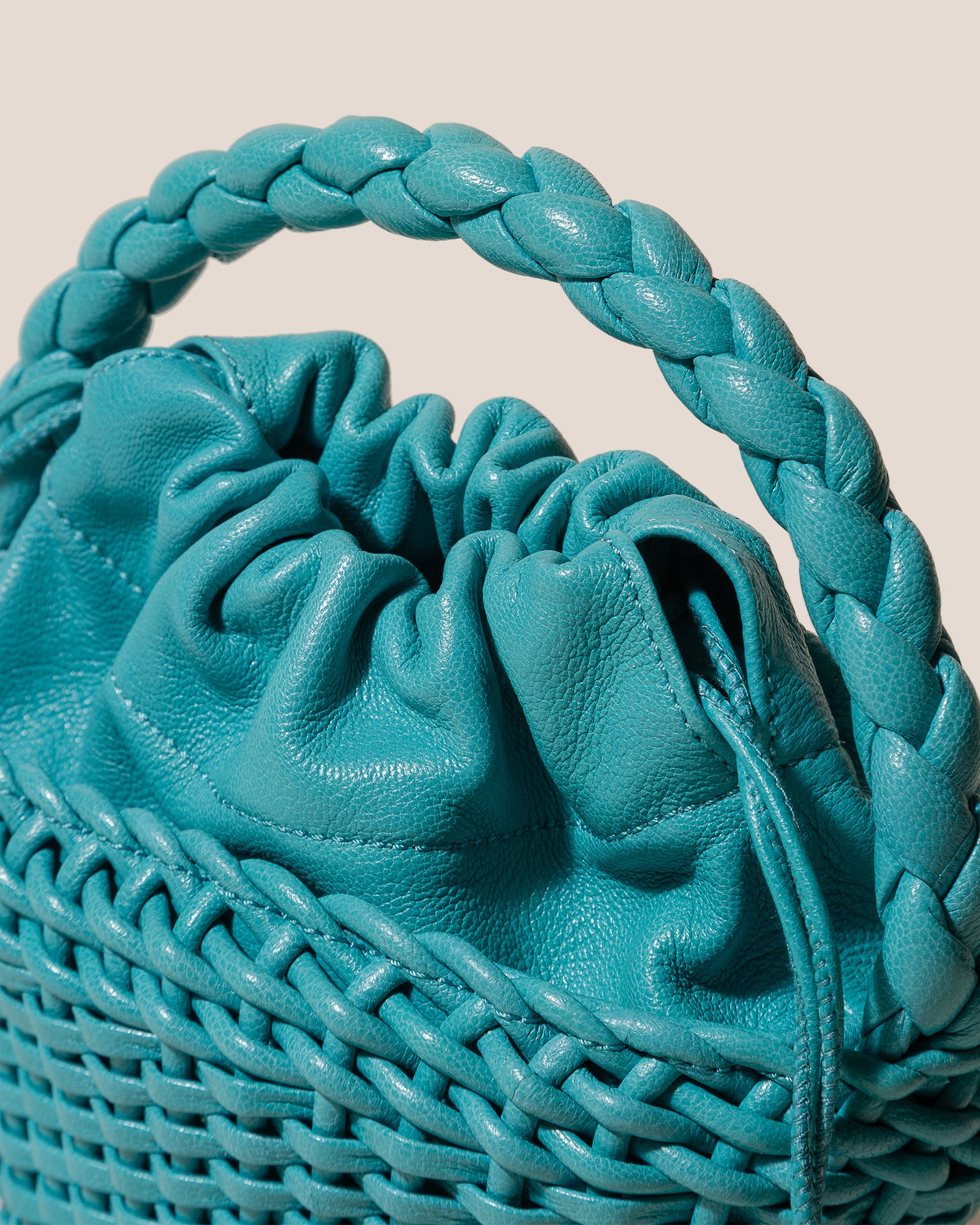 Hand-braided mini tote bag crafted in supple shiny lambskin.