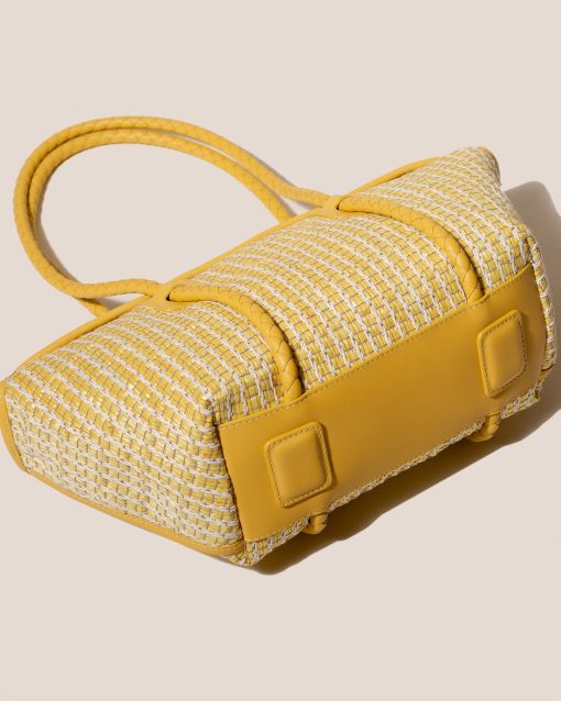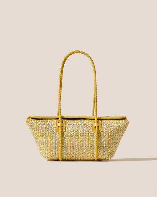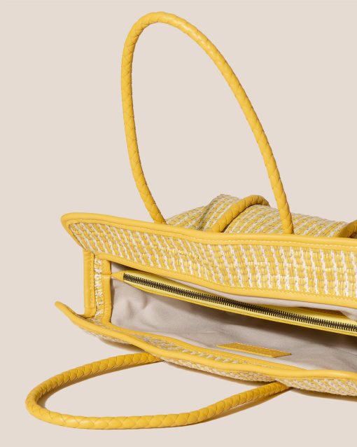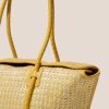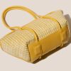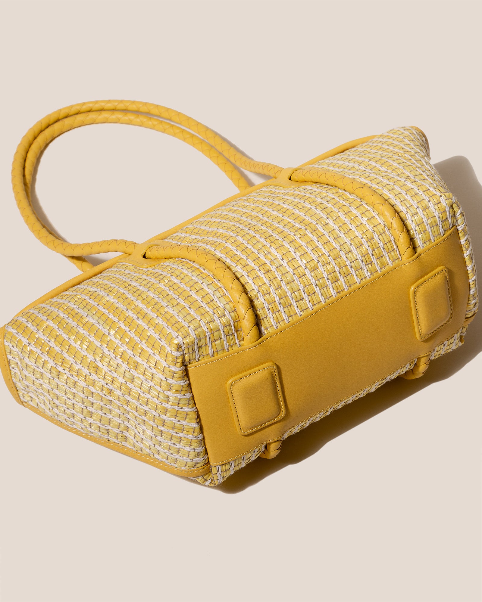 Leather-framed shoulder bag crafted from a blend of cotton and natural raffia, with braided smooth calf leather straps.