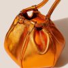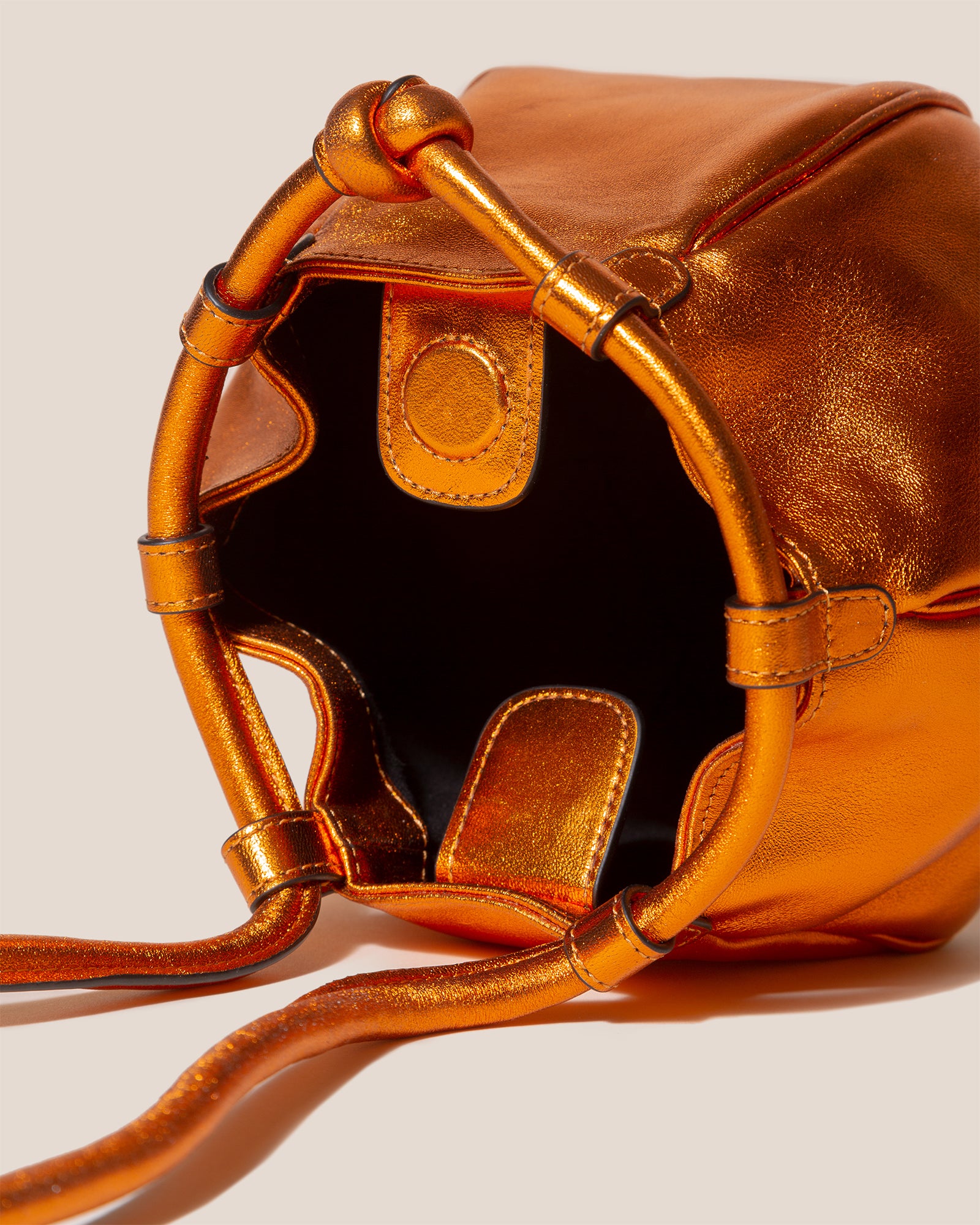 Balloon-shaped drawstring shoulder/tote bag crafted in metallic supple lambskin lined with cotton canvas.