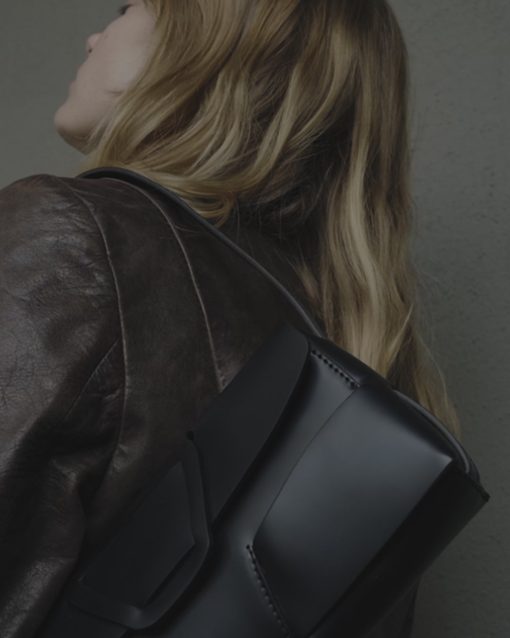 Shoulder bag with woven detail in Spanish structured calf leather and lined in calf suede.