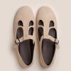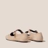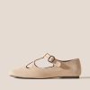 Round-toe flat T-bar shoe with cut-out detail, crafted in soft goat suede and supple lambskin.