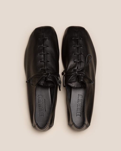 HEREU Women’s Plegada Shiny – Deconstructed Lace-up Shoe | Black