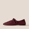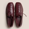 Round-toe flat lace-up shoe with bellows tongue (one piece), crafted in unlined supple shiny lambskin with matching leather laces.
