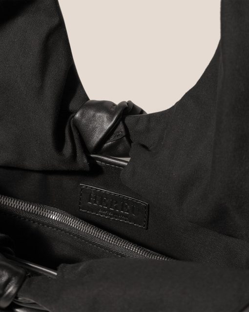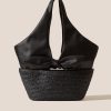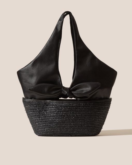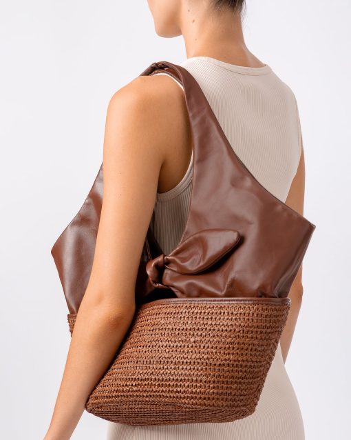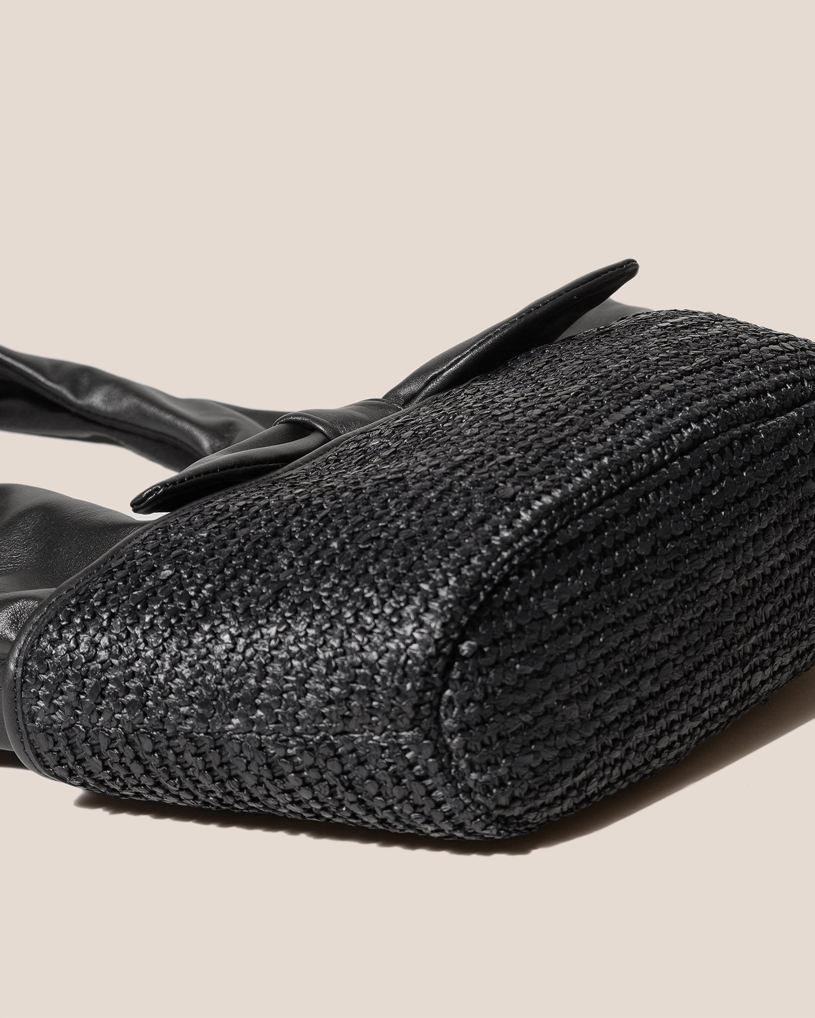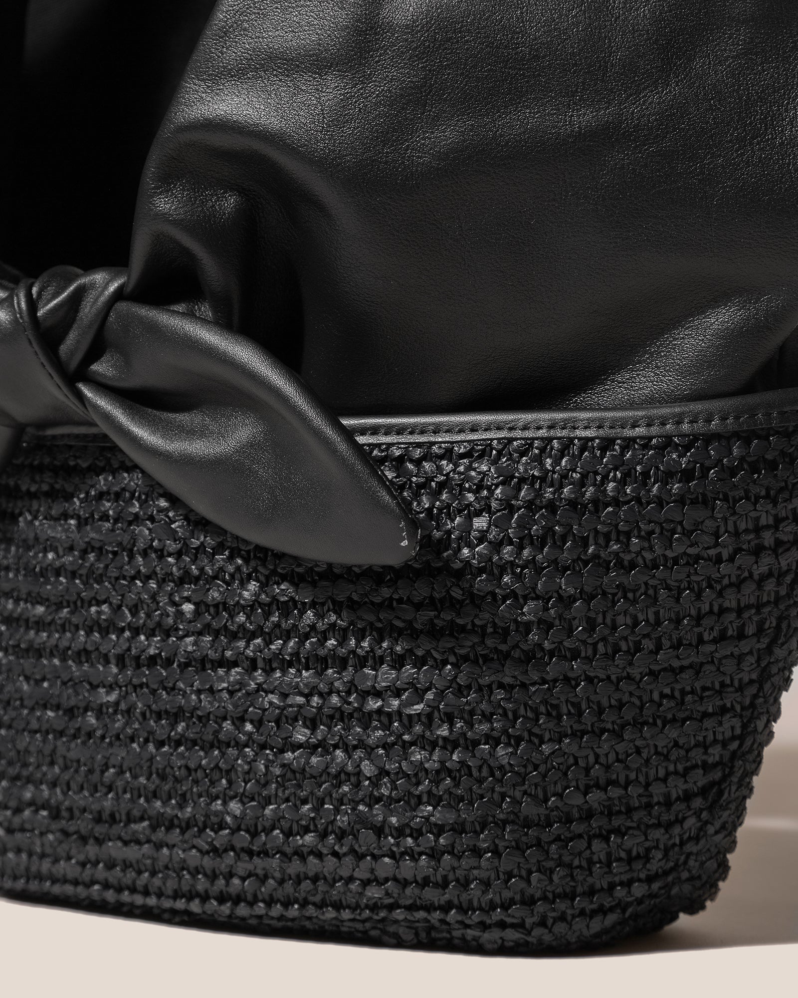 Shoulder bag crafted from smooth lambskin and natural raffia, with bow details on both sides.