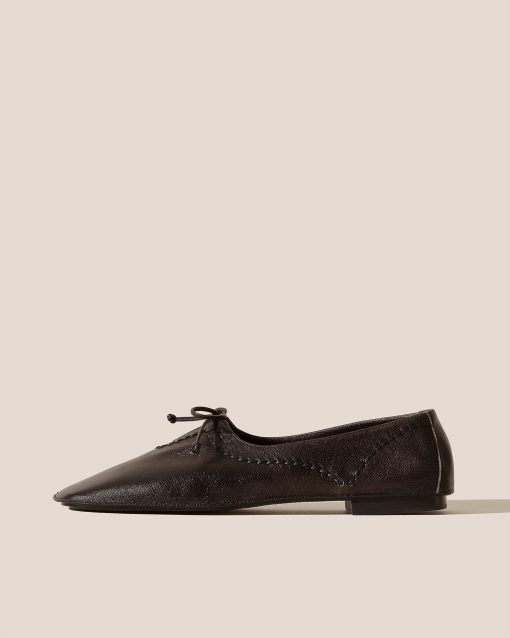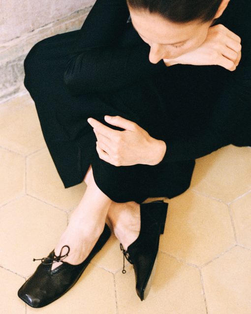 Soft lace up pump with braided details, crafted in supple shiny lambskin.