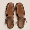 Square toe T-bar sandal with caged sides, crafted in calf suede and calf leather.