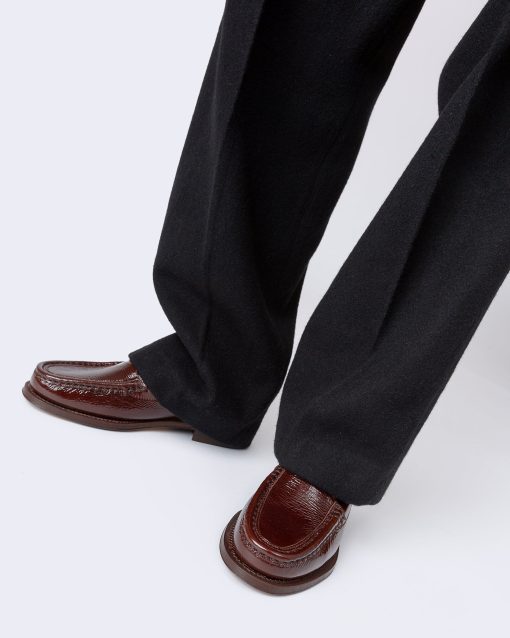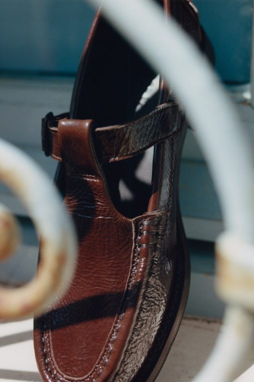 HEREU Women’s Shoes Alber Crinkled Glossy – T-bar Loafer | Dark Brown
