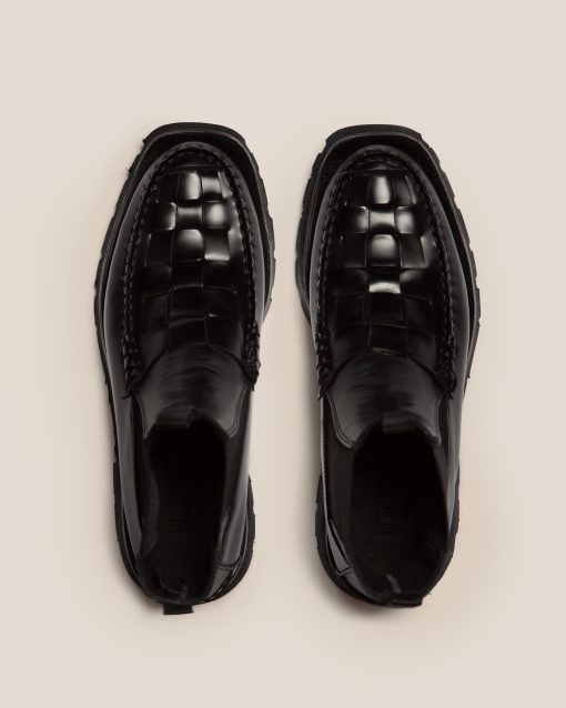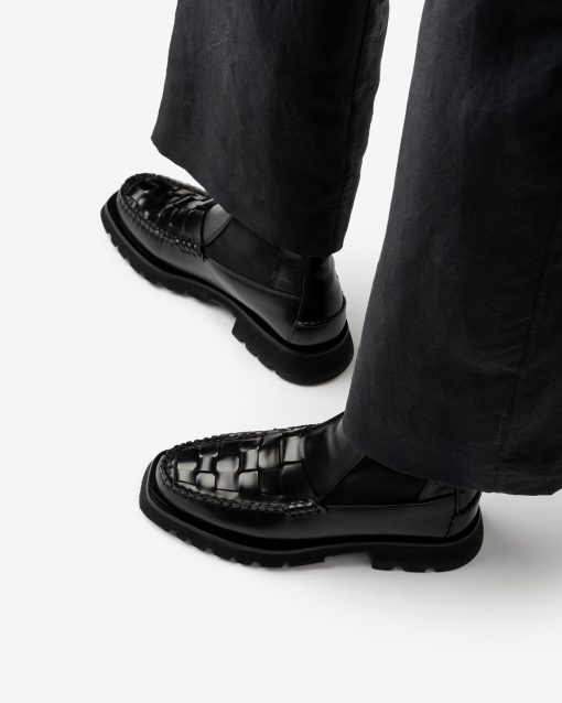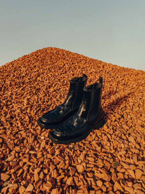 Low-calf Chelsea boot with interwoven front detail. Crafted in Spanish full-grain leather and lined in calf leather. Hand sewn using the traditional moccasin construction.