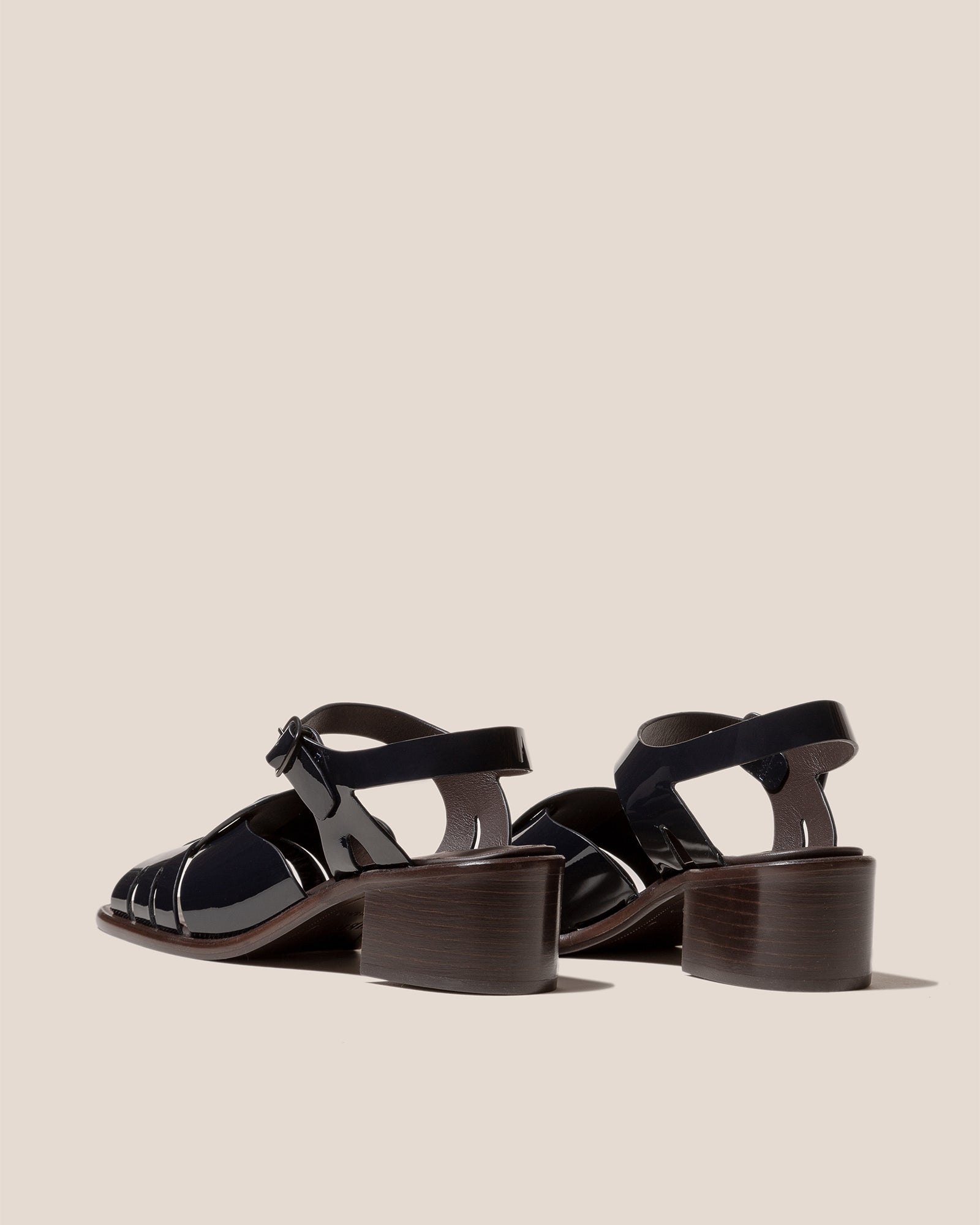 HEREU Women’s Shoes Ancora Squared Heeled Glossy – Open-toe Fisherman Sandal | Dark Navy