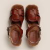 HEREU Women’s Shoes Ancora Squared Heeled Shearling – Open-toe Fisherman Sandal | Russet
