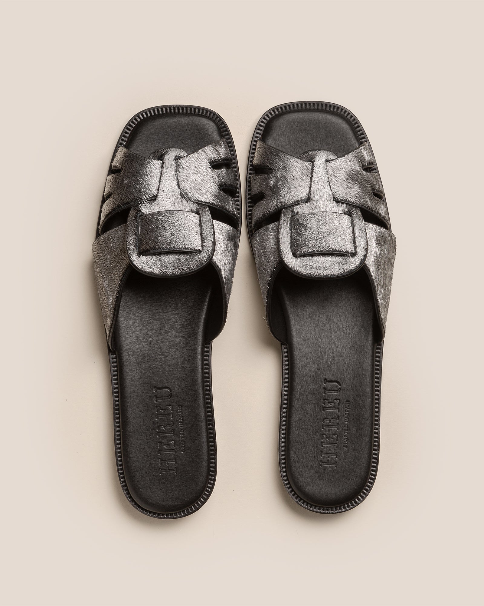 HEREU Women’s Shoes Ancora Squared Slide Calf Hair – Fisherman Slide | Silver
