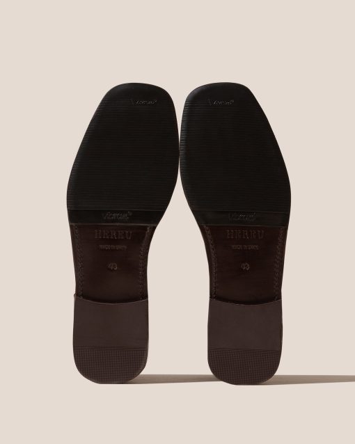 Vibram Rubber Sole – a rubber sole layered over the leather base, designed for enhanced grip and durability in varied conditions.