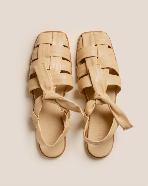 HEREU Women’s Shoes Bena – Interwoven Knotted T-bar Sandal | Oat
