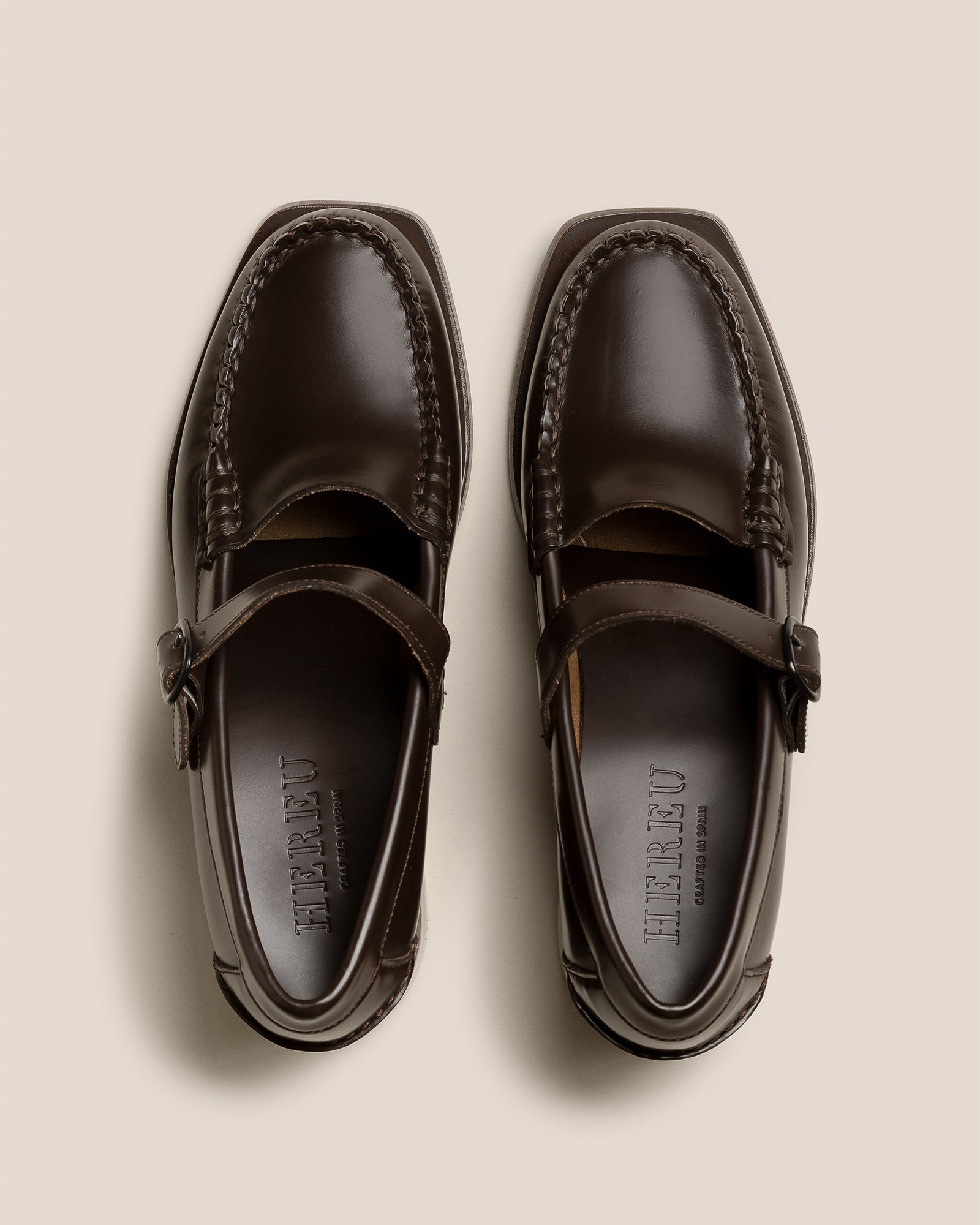 Heeled Mary Jane loafer crafted in Spanish full-grain calf leather. Hand-sewn using the traditional moccasin construction. The outsole is stitched to the upper for extra durability and flexibility.