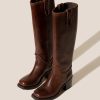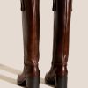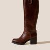 HEREU Women’s Shoes Calobra – Heeled Square-toe Braided Detail Knee-high Boot | Brown