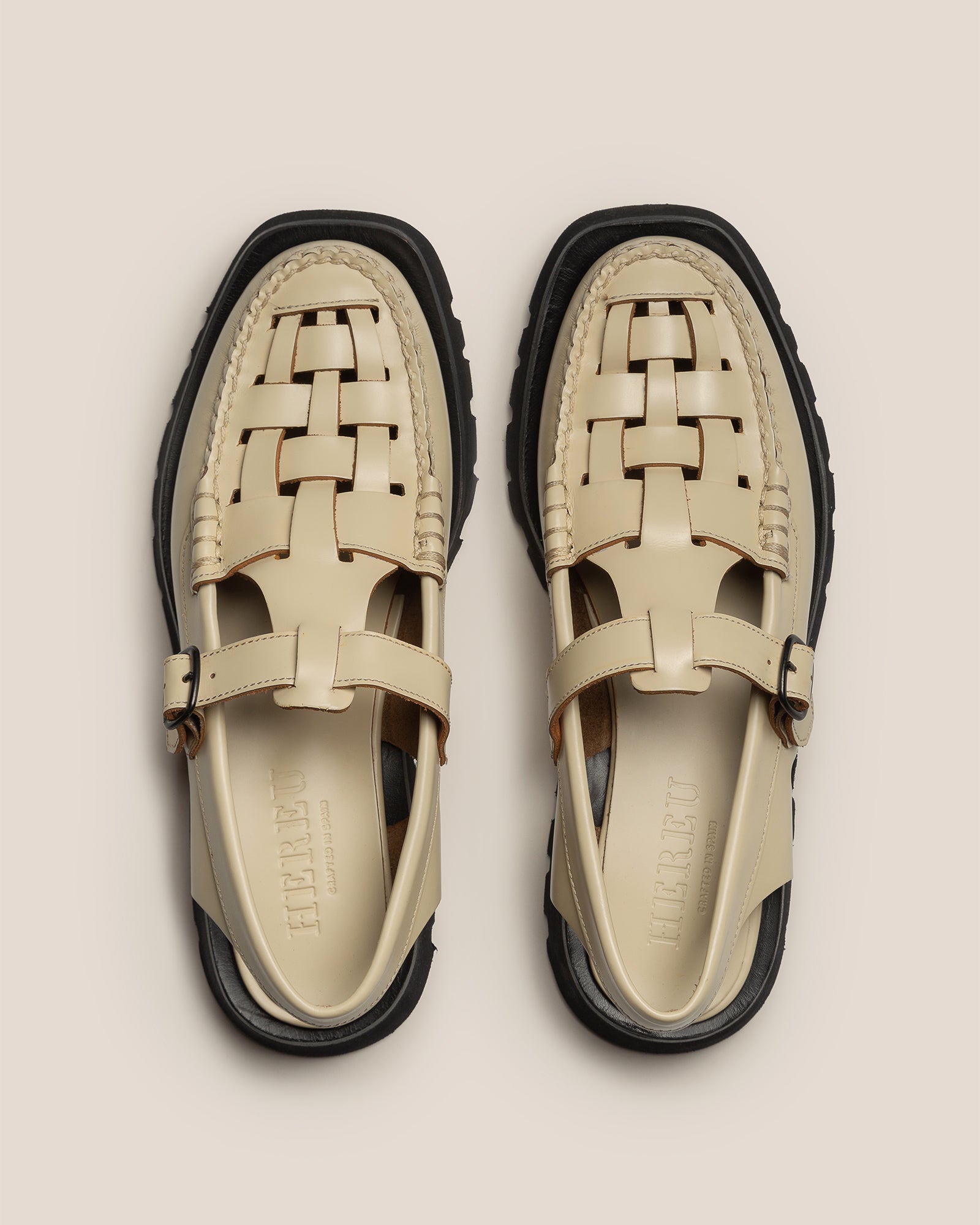Slingback t-bar loafer with interwoven front detail, crafted in Spanish full grain leather. Hand-sewn using the traditional moccasin construction. The outsole is stitched to the upper for extra flexibility and durability.