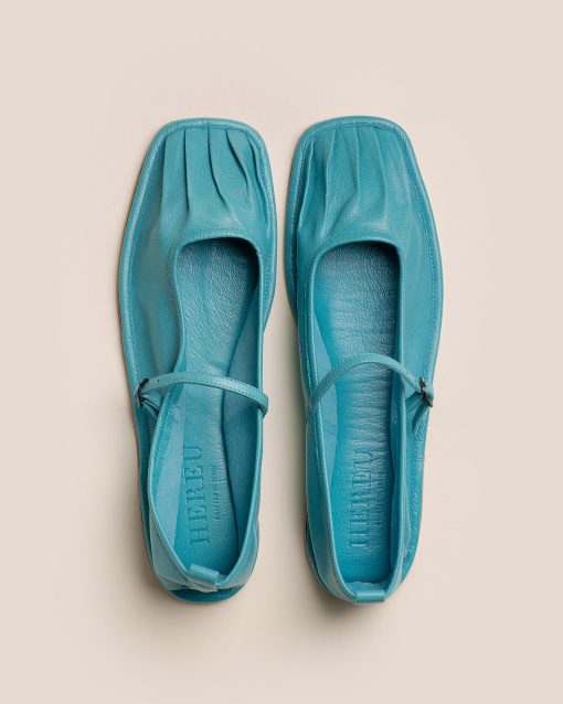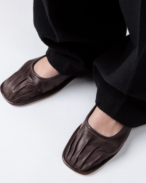 Pleated toe flat Mary Jane crafted in Italian supple shiny lambskin.