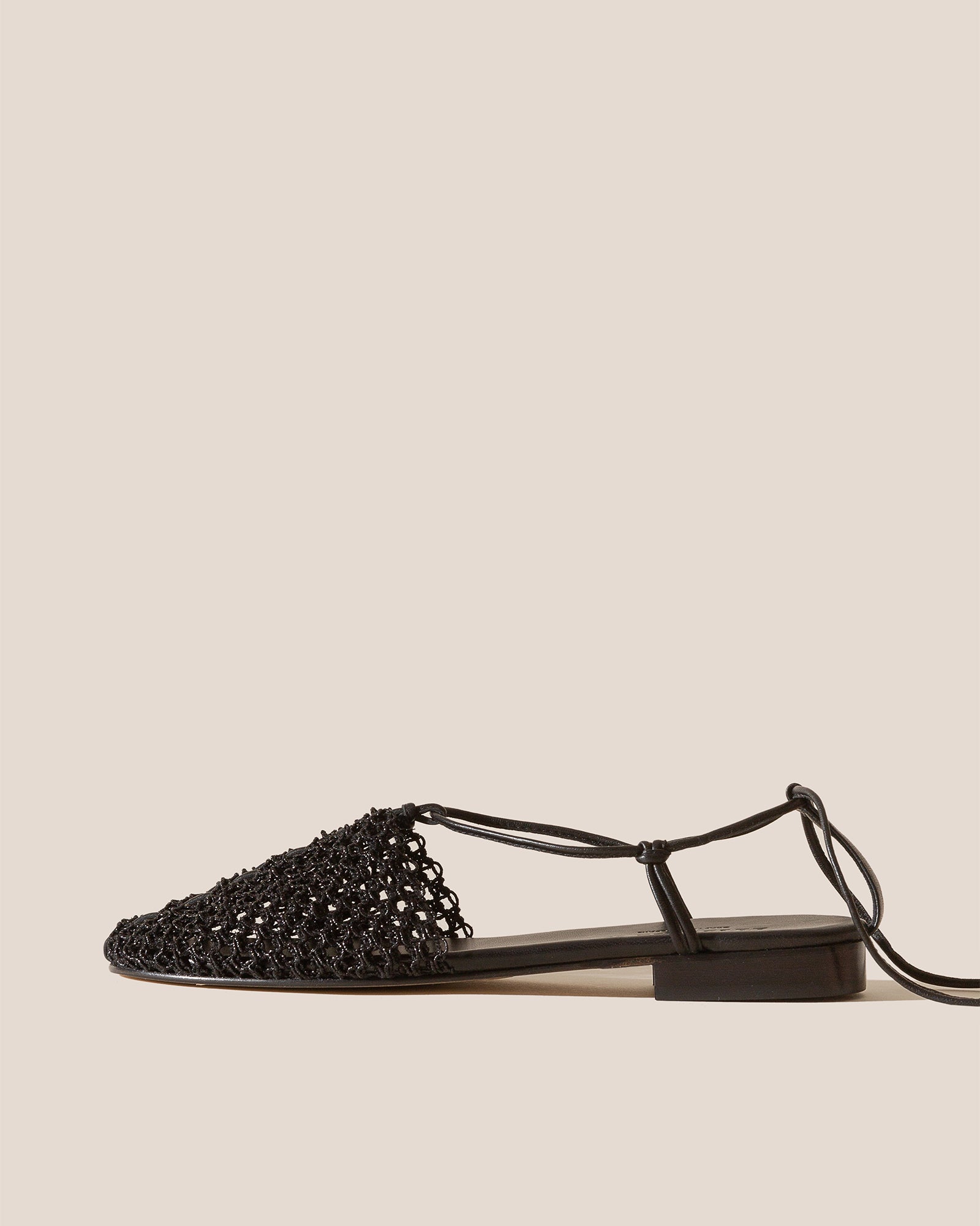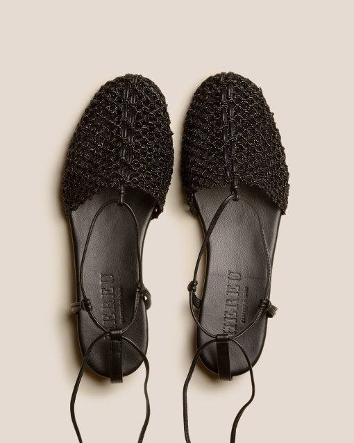 Closed-toe mesh sandal crafted in lurex mesh and lambskin.