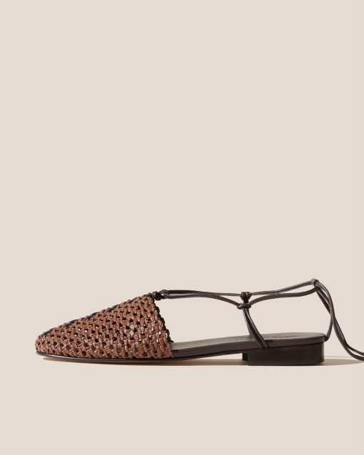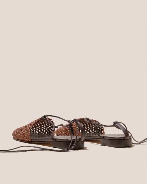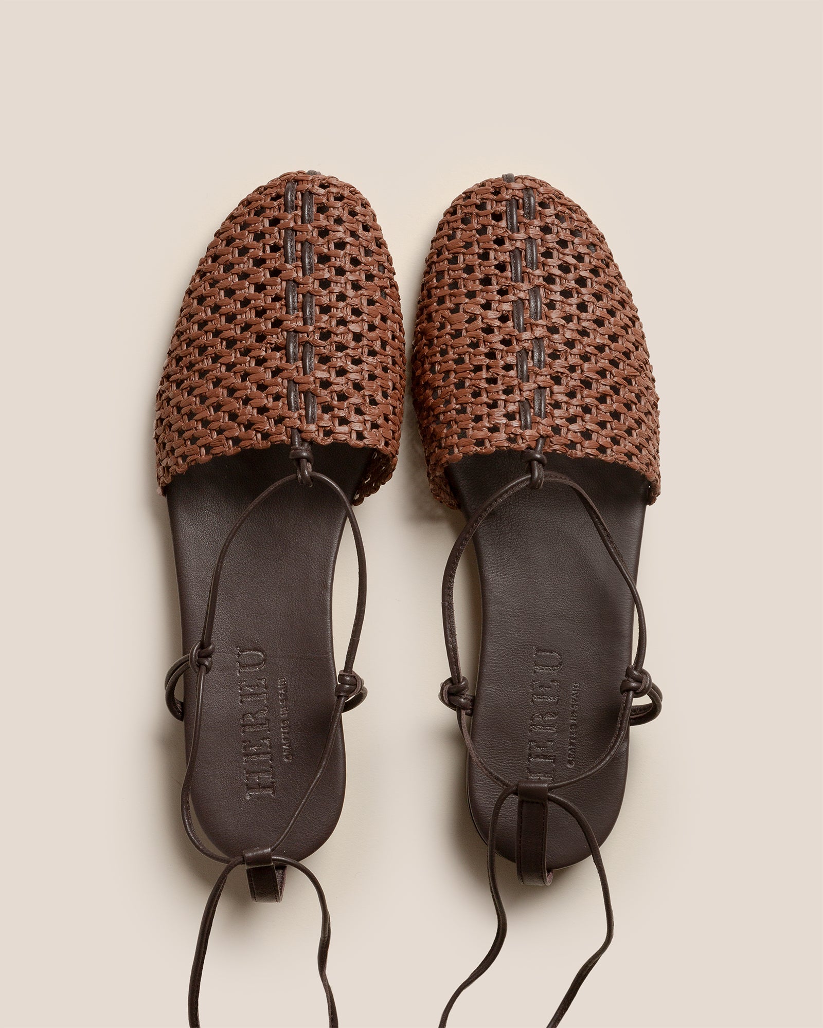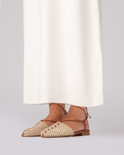 Closed-toe mesh sandal crafted in natural raffia mesh and lambskin.