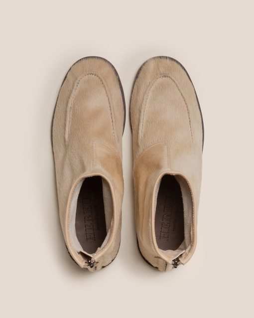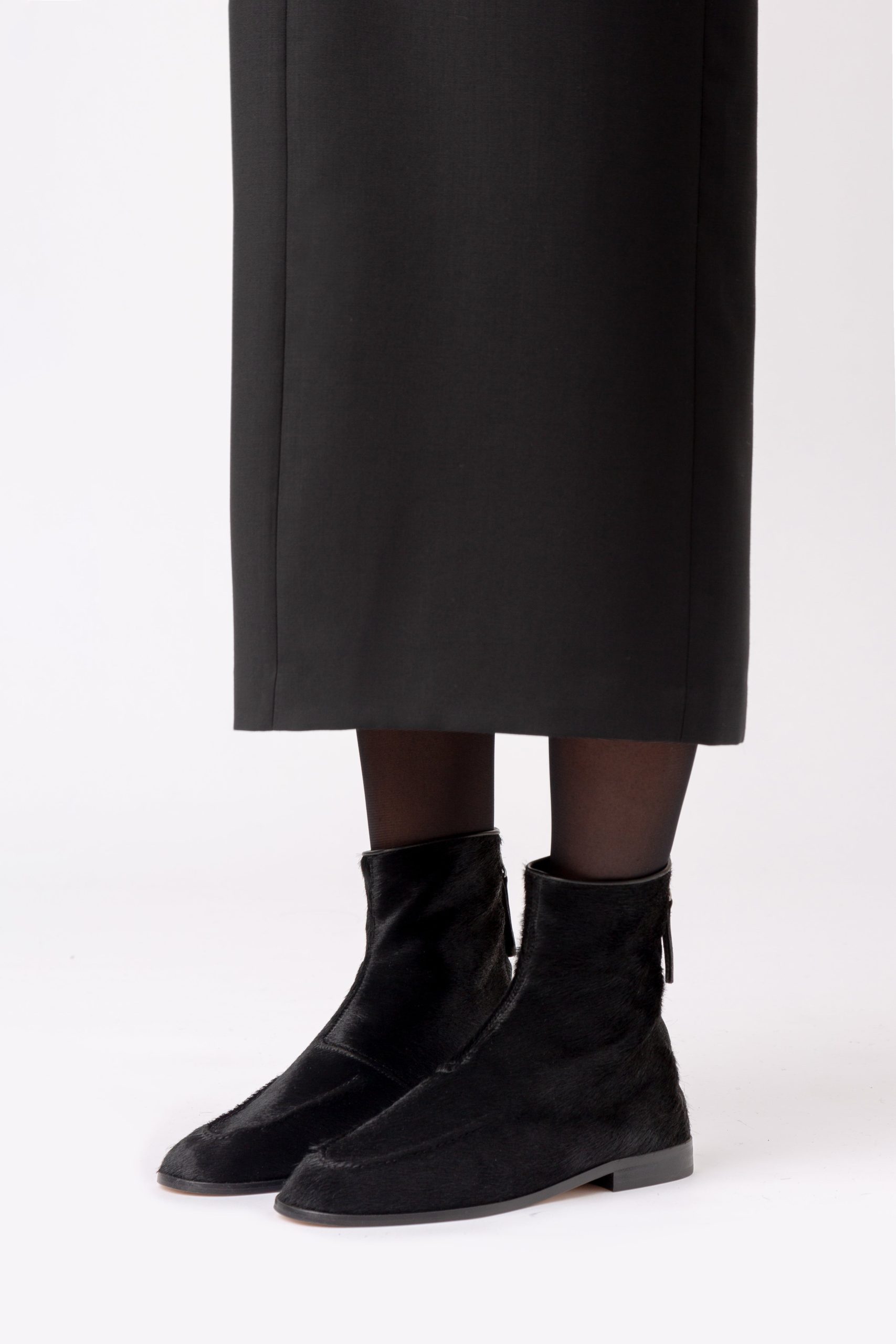 Soft low-calf boot with front seam detail, crafted in calf hair.