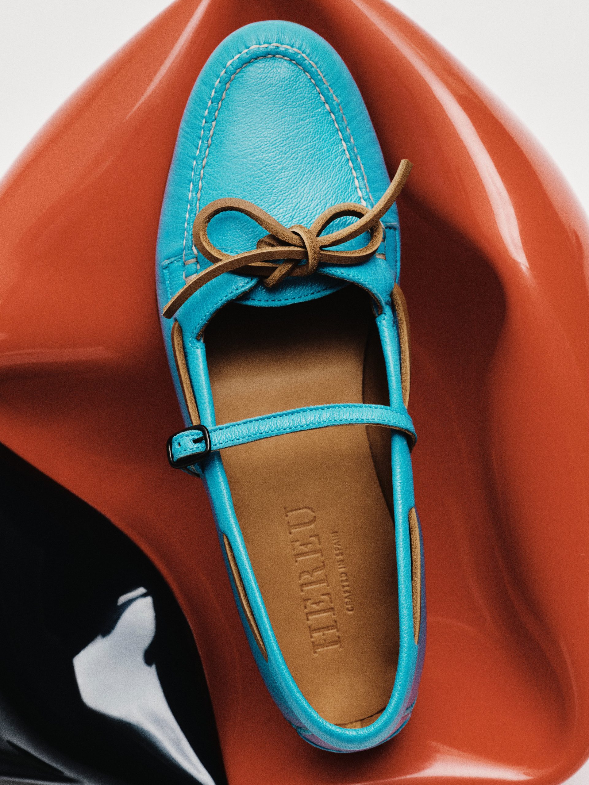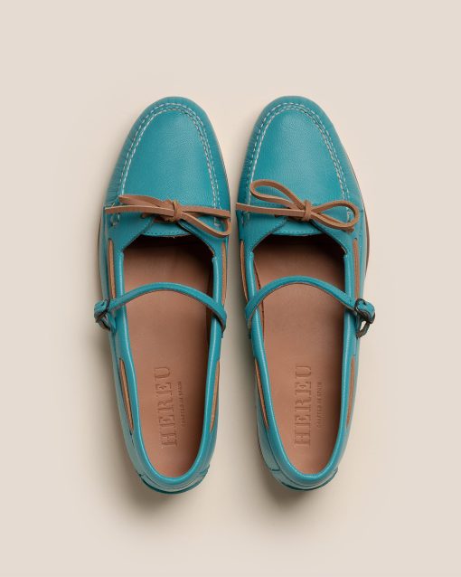 HEREU Women’s Shoes Lorea Supple Shiny – Mary Jane Loafer | Turquoise
