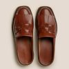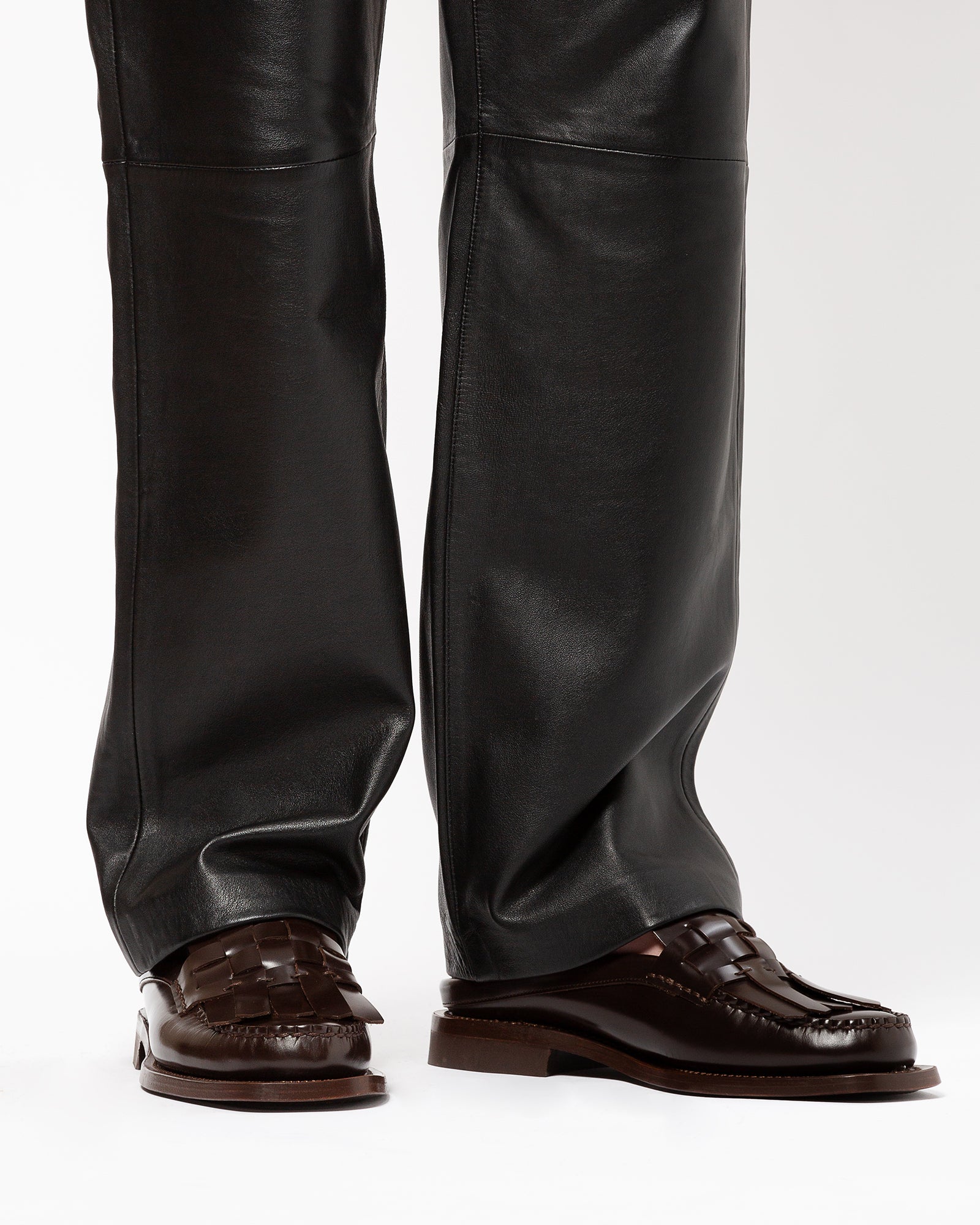 Mule loafer with interwoven fringe detailing, crafted in structured calf leather.