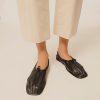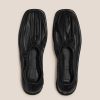 Square-toe pump with pleated toe detail, crafted in unlined soft lambskin.